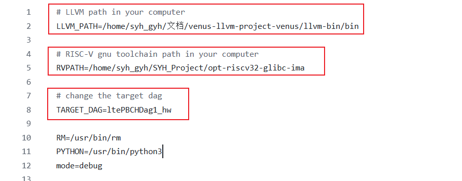 directory generated by the RISC-V Toolchain, and the venus-llvm-project-venus/llvm-bin/bin