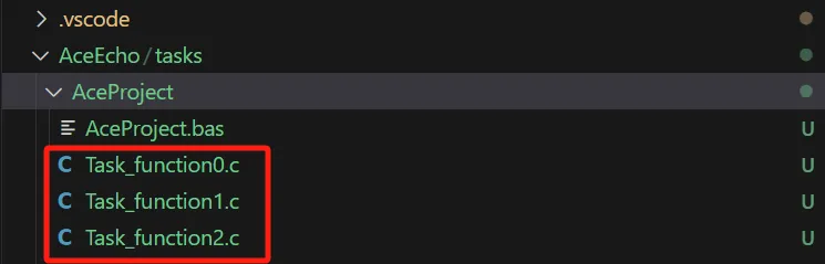 In the AceEcho/tasks/AceProject/ directory, create multiple .c files according to the required functions, and write detailed rules as shown in Venus_User_Guide.